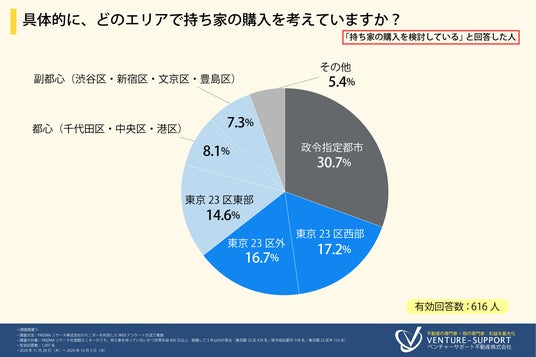 ■3割の人が「政令指定都市」で持ち家の購入を検討。「東京23区西部」「東京23区外」が続く