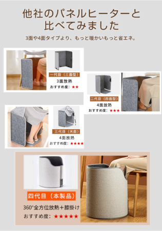 【360°方向で発熱。発熱効率60%↑】 パネルをロックでき、発熱面積が大きくなり、熱ももっと逃がさい。3面や5面タイプより、発熱効率60%↑