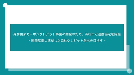 双日株式会社、住信SBIネット銀行株式会社、株式会社セールスフォース・ジャパン、株式会社テミクス・グリーン、株式会社マプリィ、芙蓉総合リース株式会社、Green Carbon株式会社、株式会社sustainacraftは、静岡県浜松市と、同市の市有林において間伐等の森林整備を通じ、Verified Carbon Standard(VCS)(※1)に基づくボランタリーカーボンクレジット創出を推進することに合意し、連携協定を締結(以下「本協定」)しました。