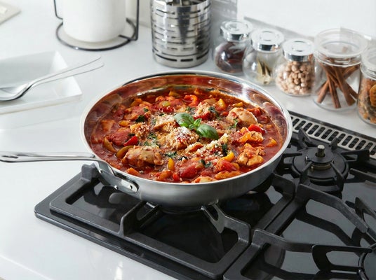 焦げにくく手入れ簡単。熱効率に優れたアルミクラッド3層鋼採用、20年使える一生モノ。焼く・煮る・揚げるを1台でこなす深型設計