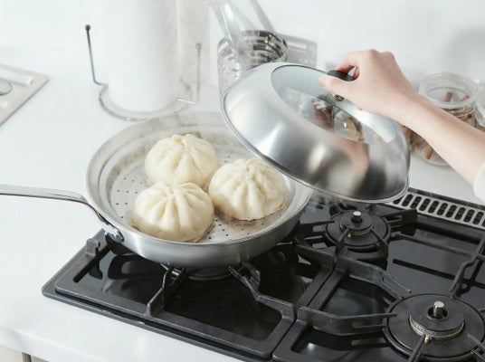 専用の蒸しプレートを使用することで、フライパンが蒸し器としても使用可能。