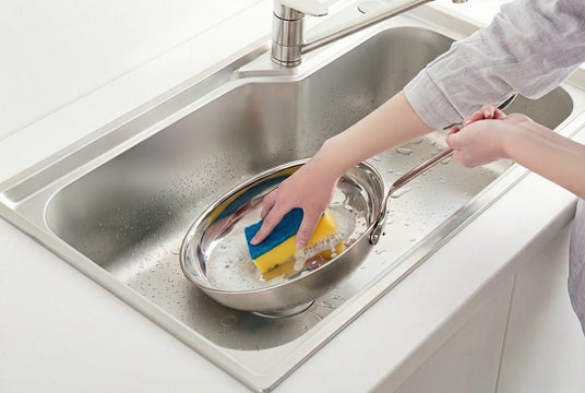 鉄フライパンのようなシーズニングは不要。使用後は洗剤とスポンジで洗うだけの簡単なお手入れでお使いいただけます。