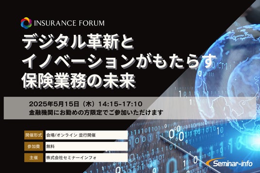 株式会社セミナーインフォ(本社:東京都千代田区 代表:小西 亘)は、2025年5月15日(木)にINSURANCE FORUM「デジタル革新とイノベーションがもたらす保険業務の未来」を開催いたします。