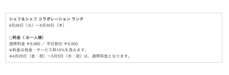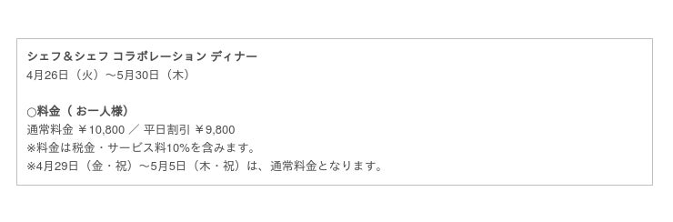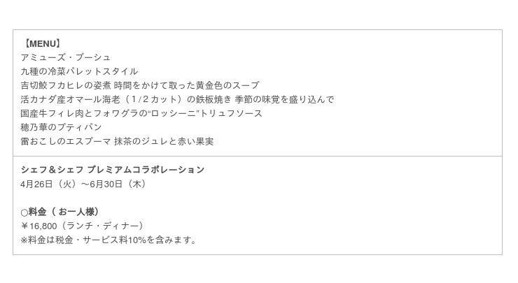 ~ふたりのシェフが織りなす珠玉のコラボレーション~4月26日~6月30日