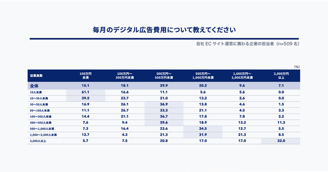 ・デジタル広告における月予算は「300~500万円未満」が最多