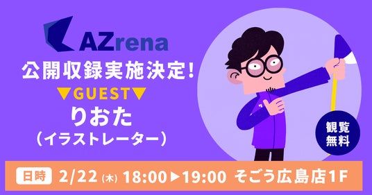 株式会社Link Sports(本社:東京都渋谷区、 代表取締役 CEO:小泉真也)が運営するスポーツメディア「AZrena」が2月22日(木)18:00よりそごう広島店1Fにて、イラストレーターのりおたさんの公開収録を実施することをお知らせいたします。