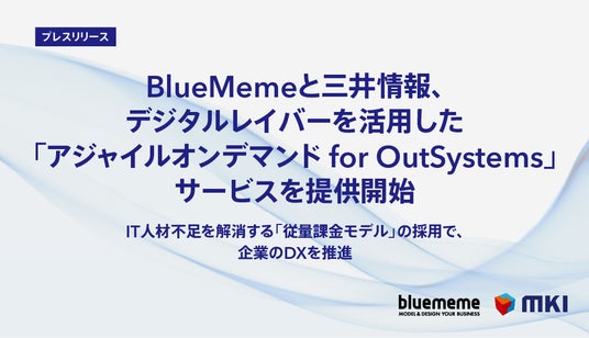 2024年3月15日、株式会社BlueMeme(本社:東京都千代田区、代表取締役社長:松岡 真功、以下:当社)は、企業のデジタルトランスフォーメーション(DX)を加速させる新たな開発サービス「アジャイルオンデマンド for OutSystems」の提供を開始し、三井情報株式会社(本社:東京都港区、代表取締役社長:浅野 謙吾、以下:三井情報)は、本サービスの販売を開始いたします。