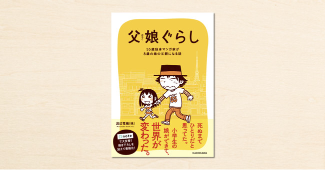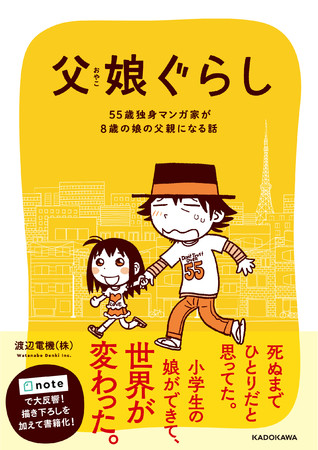 メディアプラットフォームnoteの「noteクリエイター支援プログラム」を通じ、渡辺電機(株)さんが連載したコミックエッセイが書籍化。『父娘ぐらし 55歳独身マンガ家が8歳の娘の父親になる話』が、KADOKAWAから4月28日(木)に発売されます。