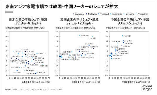 欧州最大級の経営戦略コンサルティングファームである株式会社ローランド・ベルガー(以下、ローランド・ベルガー)は、6月15日、長きにわたり日本企業が高い技術力を武器に存在感を示しつつも、近年中国メーカー等にシェアを奪われつつある東南アジアにおける家電産業について、市場の現況およびこれから起こり得る構造変化の中で日本のメーカーが示して行くべき戦略の方向性への示唆を探ったレポート「東南アジア家電市場の構造変化と日本企業が取るべき戦略方向性」を発表しました。