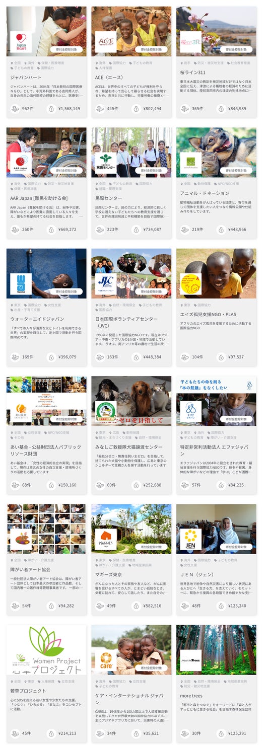 人気の寄付先団体