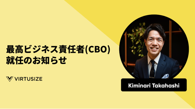 株式会社Virtusize(代表取締役:上野オラウソン・アンドレアス、本社:東京都港区、以下 Virtusize)は、この度CBO(最高ビジネス責任者)に高橋君成(たかはし きみなり)が新たに就任したことを発表します。今回の採用により、営業・プロダクトなど全方面にわたって組織およびビジネスを強化し、さらなるプロダクト品質の向上につとめます。