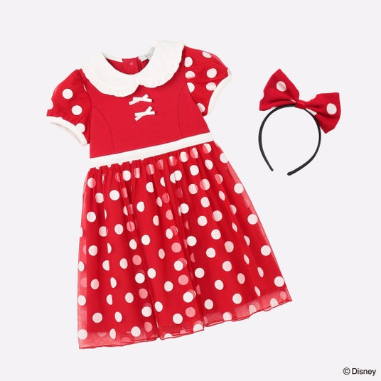 今回は、ディズニーの人気キャラクター「ミニーマウス」「アリス」「白雪姫」になりきれる子ども服を提案します。それぞれのキャラクターをイメージしたワンピースとカチューシャのセットアイテムです。1セットでトータルコーディネートが完成するので、ハロウィーンのコスチュームにもおすすめです。