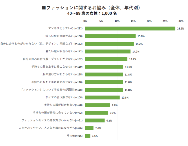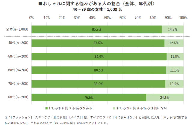 40~70代女性の約9割がおしゃれに関する悩みを持っていることが明らかに。
