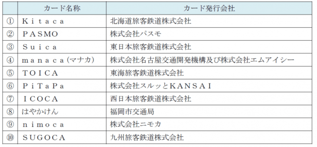 2.対象カード 全国相互利用対象の交通系ICカード ※別表参照