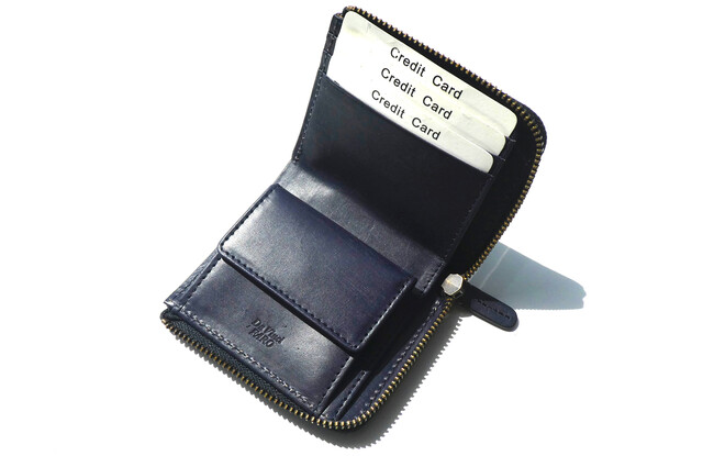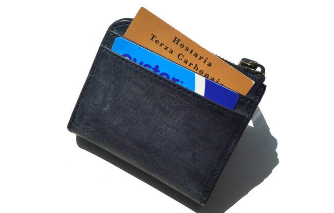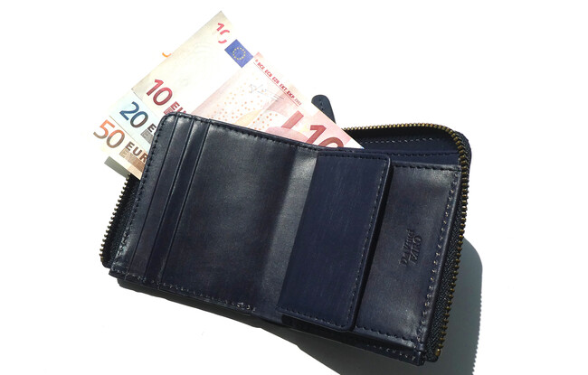 小ぶりなサイズだが、ワンアクションで開閉できて、お札とコイン、そしてカードホルダーも備えた手のひらサイズの仕様。