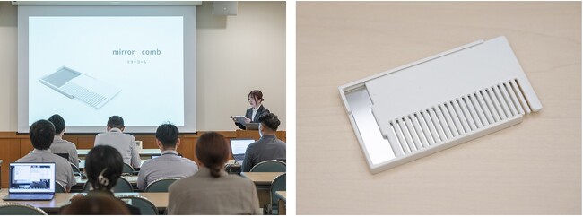 参加した学生は、以下のようにコメントしています。「市場のリサーチをすればするほど、差別化が難しいと感じた(2年生 救仁郷(くにごう)さん)」「ある程度自分が作りたいものを作れる自由度があるが、お客様目線かつ価格を合わせていくなかで、魅力を落とさず商品化するのが難しかった。プレゼン先が企業ということで、学内で行うものとは別のアプローチでプレゼンする経験が、2年生の今できたのは貴重な機会となった(2年生 鈴木さん)」と話しています。