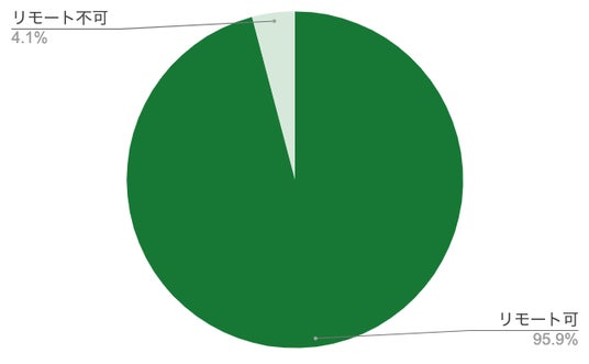 フリーランスエンジニア案件のリモート可否は、リモート可が95.9%を占める結果となりました。
