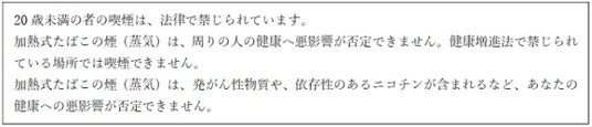 BATグループでは、たばこ製品のマーケティングを適切に実施するために国際的な自主規準を設定しています。そのため消費者に対するたばこ製品に関するすべてのコミュニケーションには、20歳未満の方へのコミュニケーションをお控えいただくとともに、「喫煙と健康に関する注意文言」を表示することを関係各位にお願いしております。加熱式たばこに関しては、記事掲載していただく際には、「健康に関する注意文言」が表示されるようご配慮いただきたく存じます。ご協力の程、何卒よろしくお願い申し上げます。