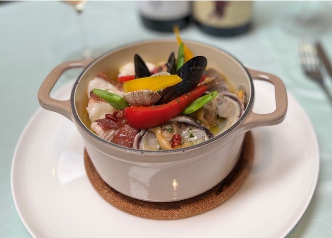 こちらは定番の海鮮ポットでございます。2月からのスープは、定番のブイヤベース風と