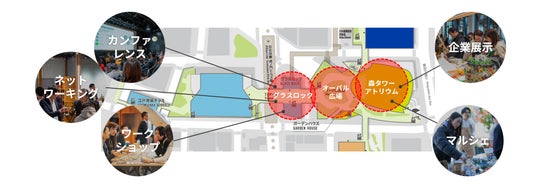 会場は当イベントの趣旨に賛同し協賛する、森ビル株式会社が管理運営する虎ノ門ヒルズ内各所で開催。虎ノ門ヒルズ 森タワー2階 アトリウムやオーバル広場のほか、2025年4月に開業したクロスセクターで社会課題解決を目指す拠点「Glass Rock ~Social Action Community~」での開催を予定しています。会場別の実施コンテンツは後日イベント特設サイトにてお知らせします。