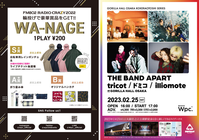 株式会社ワールドパーティー(本社:大阪市住吉区、代表取締役CEO:中村 俊也)が展開するレイングッズブランド「Wpc.」は、2022年12月25日(日)~28日(水)にインテックス大阪で開催される「FM802 ROCK FESTIVAL RADIO CRAZY 2022」に協賛・出店いたします。RADIO CRAZYは3年ぶりの開催となり、今年は初の4日間で総勢約100組のアーティストが集結します。