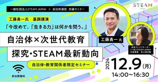 一般社団法人STEAM JAPAN(本社:東京都豊島区、代表理事/STEAM JAPAN 編集長:井上祐巳梨、運営:株式会社Barbara Pool )は、『自治体通信』(運営:イシン株式会社 本社:東京都新宿区、代表取締役社長:片岡 聡)と共催セミナー「自治体 × 次世代教育 探究・STEAM最新動向」を開催します。