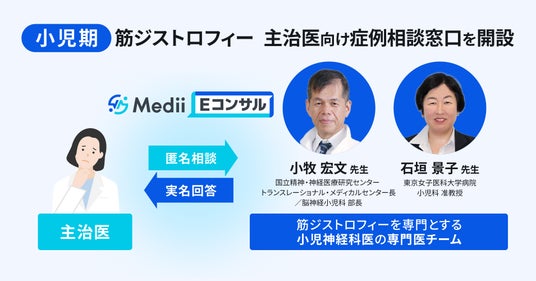 株式会社Medii(本社:東京都新宿区、代表取締役医師:山田裕揮、以下Medii)は、医師向け専門医相談サービス「Medii Eコンサル」において、小児神経専門医チームと連携し、小児期の筋ジストロフィーを対象とした症例相談窓口を開設しました。