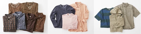 日本国内の提携工場で、素材ごとに最適な染色加工を行った「オーバーダイ」商品と、プロが丁寧に洗濯し、徹底した検品を実施した「ウォッシュ仕上げ」商品の2種類の古着を販売します。「オーバーダイ」商品には、これまで展開してきたブルー、グレー、ピンク、ダークグリーンに加え、秋冬らしいブラウンが登場する予定です(11月展開予定)。また、「ウォッシュ仕上げ」商品には、フリースやニット、フランネルシャツやアウターなど、これからの季節に活躍するラインアップを豊富に揃えます。