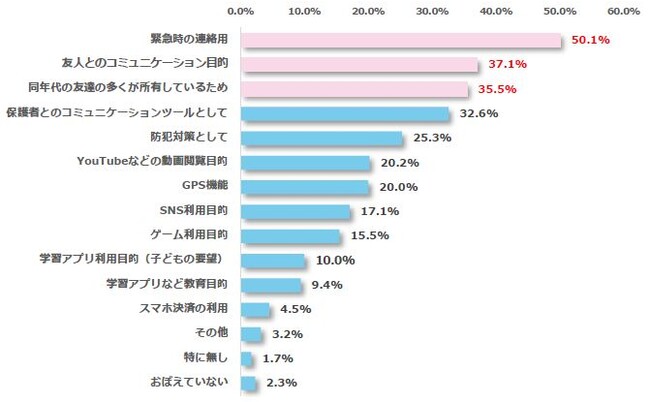 ・子どもにスマホを所有させた理由、最多回答は「緊急時の連絡用(50.1%)」