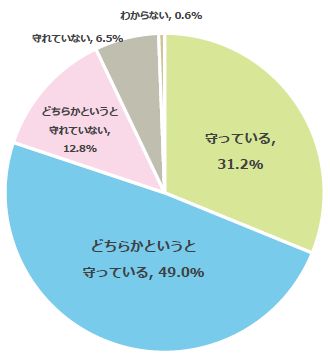 また、子どもはスマホ利用に関するルールや約束事を守っているか質問したところ、80.2%が「守っている」(守っている:31.2%、どちらかというと守っている:49.0%)と回答しました。