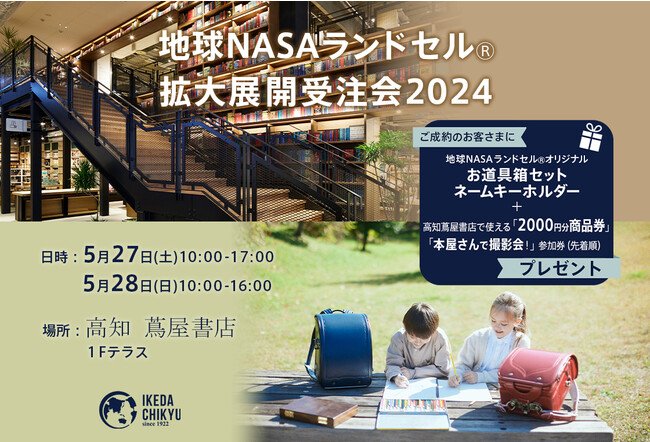 ランドセルの企画・販売を行う池田地球株式会社(本店:東京都港区:代表取締役 村尾光一)は、5月27日(土)・5月28日(日)の2日間に限り高知蔦屋書店 1Fテラスにてランドセル売り場を拡大して受注会を開催いたします。