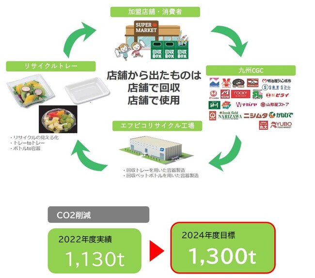 株式会社エフピコ(本社:広島県福山市、代表取締役会長 佐藤 守正、以下「エフピコ」)と株式会社九州シジシー(本社:福岡市博多区、取締役社長 杉村 哲、以下「九州シジシー」)は、九州シジシー加盟23 社が九州地区に展開する加盟店647 店舗(2023年6月現在)を対象に、店頭で回収された使用済み食品トレーを新たな食品トレーに生まれ変わらせる「トレーto トレー」及び使用済みペットボトルを回収して新たな食品容器に生まれ変わらせる「ボトルto 透明容器」の水平リサイクルを推進するための協働を開始しました。