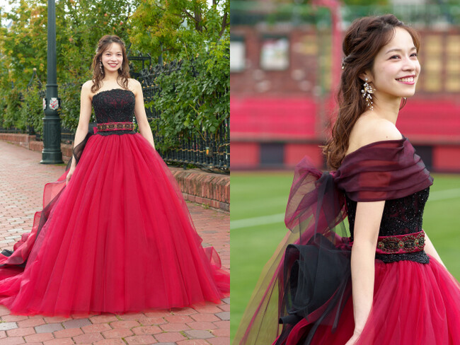 株式会社あいプラン(北海道札幌市/代表取締役・新道喜信)のドレスショップDESTINA(ディスティーナ/北海道札幌市中央区南3条西5丁目)は、北海道コンサドーレ札幌のチームカラーである「赤と黒」を取り入れた新作ドレス(2種)やオリジナルアイテムで、あなたのウエディングシーンを彩ります。