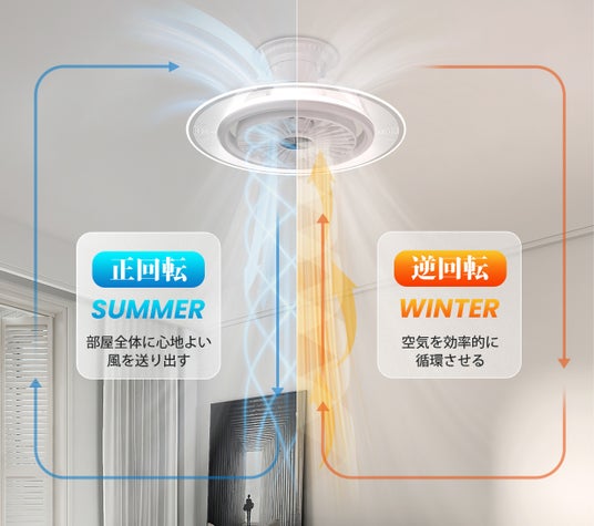- 冬:暖かい空気が下まで回るよう促し、空気を循環させる
