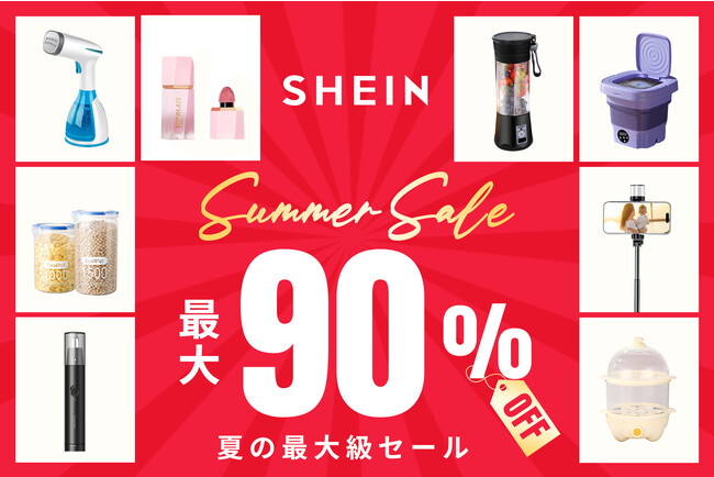 SHEIN Group(https://www.sheingroup.com/)が展開するグローバルファッションブランド「SHEIN(シーイン)」は、2023年6月5日(月)から7月3日(月)まで、ファッションアイテムはもちろん、電子機器、携帯ケース、生活家電、ホーム用品、美容、健康用品などの実用品をはじめとした主要アイテムを、最大90%オフにてお買い求めいただける夏の最大級セール『Summer Sale』を開催いたします。最大25%オフクーポンや全品送料無料キャンペーンも予定しておりますので、この機会にぜひお得にお買い求めください。