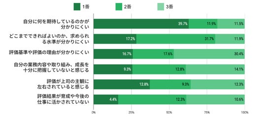 - 「評価が上司の主観に左右されている」も1位選択12.8%に上り、評価の属人性への不信感も顕在化