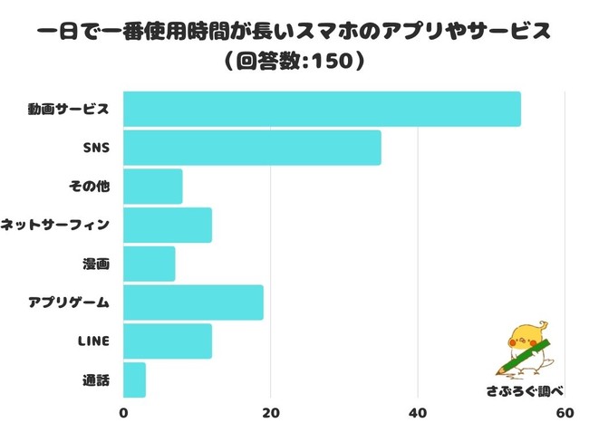 一日で一番使用時間が長いスマホのアプリやサービスをアンケートにて調査したところ、1位は「動画サービス」でした。