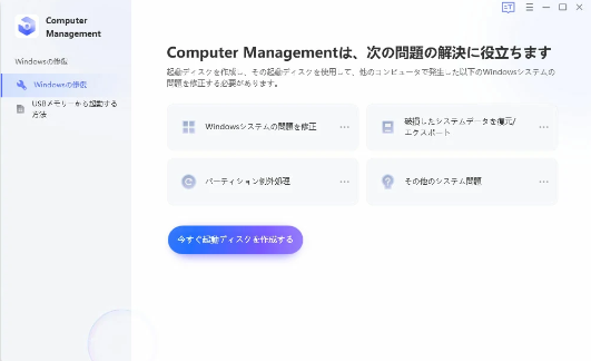 このような時には、パソコンの修復を行う専門ツールを使用するというのがおすすめです。ただ、どのツールを使えばよいのか分からないということもあるかと思いますので、今回は専門ツールPassFab Computer Managementをご紹介します。PassFab Computer Managementは起動できないハードディスクのデータの回復やWindowsのログインバスワードを忘れてしまった場合の回復にも使えるツールです。今回のようにパソコンが起動しなくなってしまった場合の対応手順は以下の通りです。