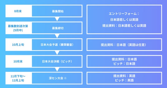 ※日本大会通過者は、深セン本選への参加資格を獲得でき、原則、深セン本選に参加いただきます。