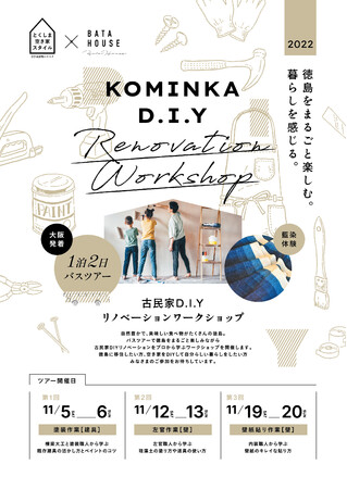 そんな徳島の魅力に触れながら、リアルな空き家を舞台に、住まいのDIYリノベーションを体験できる1泊2日の大阪発着バスツアーを開催します。