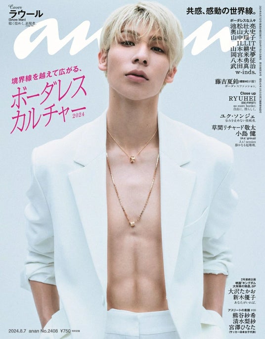 雑誌「anan」2408号、「ボーダレスカルチャー2024」特集にて、ライブ配信事務所のRainbowLIVEが注目の所属ライバー様と共に掲載されました。表紙を飾ったSnow Manのラウールさん、さらにSpecial Editionの表紙を飾る大沢たかおさんと新木優子さんが登場し、多くの反響を呼びました。本記事では、掲載記事に加え、掲載クリエイター5名の撮影別ショットも特別公開します!