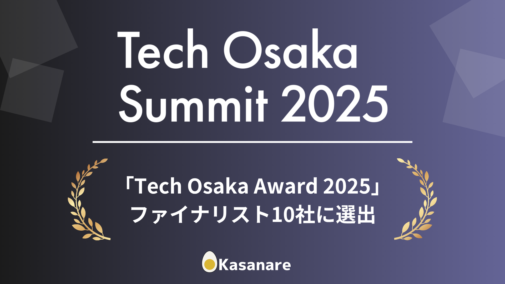カサナレ株式会社(本社:東京都渋谷区、代表取締役:安田喬一、以下「カサナレ」)は、スタートアップの国際的ピッチコンテスト「Tech Osaka Award 2025」において、最終10社のファイナリストに選出されました。