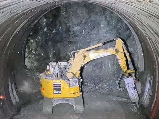 3Dレーザスキャナを搭載した遠隔ブレーカの施工状況