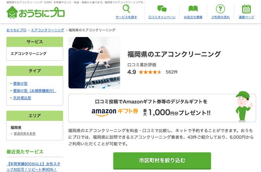 エアコンクリーニングの予約サイト「おうちにプロ」について