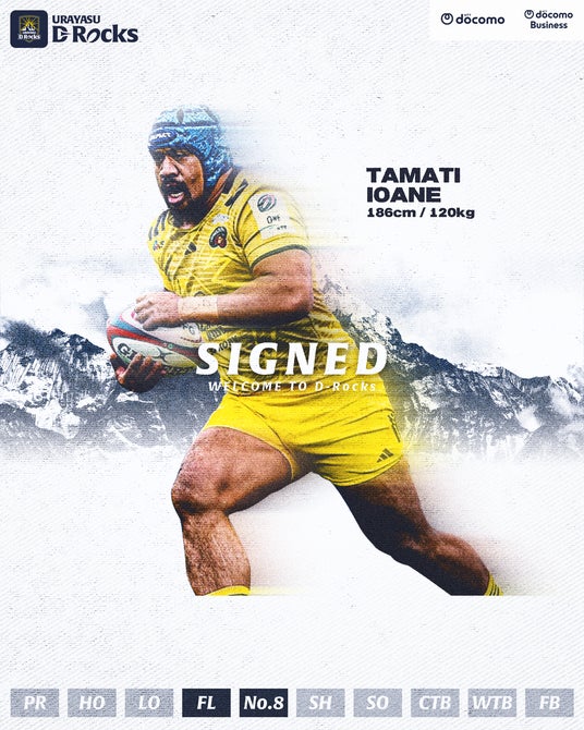 浦安D-Rocksではそのパワフルなキャリーとアグレッシブなプレーでチームの攻撃にさらなる厚みを加えてくれることを期待しています。彼のプレーがファンの皆さまに新たな興奮と感動を届けてくれることでしょう。