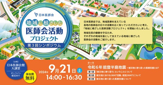 日本医師会は、特設サイト並びに公式YouTubeチャンネルで9月21日に開催した日本医師会シンポジウム「地域に根ざした医師会活動プロジェクト 第3回シンポジウム」のアーカイブ動画の公開を始めました。