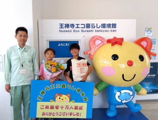 当社グループが神奈川県川崎市から委託を受けて運営管理を担う環境学習施設「王禅寺エコ暮らし環境館」において、7月29日に10万人目の来館者を迎えました。これを記念し、川崎市環境局の主催により、これまで見学いただいた多くのお客さまへの感謝の意を込めた10万人達成セレモニーが開催されました。