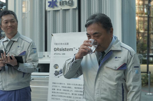 ORsistem-100ORsistem-100_実演の様子_浄水後の水を飲む安田