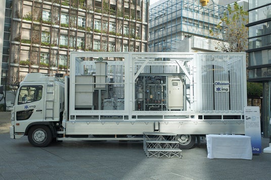 可搬式浄水装置「 ORsistem(TM)-100」は、病院・介護施設・避難所など“点の復旧”を対象に、日量100m³(約400人分)の浄水供給が可能。車載のまま運用でき、到着後すぐに稼働できる機動力を備える。