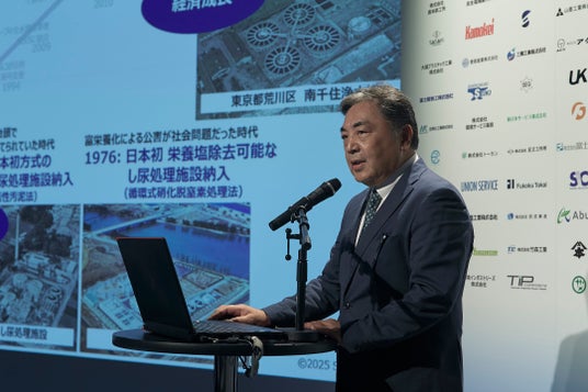 開会にあたり安田は、1931年の国産初の水道施設納入に始まり、公害問題を解決する排水処理技術の開発や水不足を解消する再生水利用技術の開発など、約100年にわたり水インフラを支えてきた水ingの歩みを紹介した。一方で、人口減少や自治体財政の逼迫、施設老朽化、人材不足が進むなか、「従来の枠組みだけでは水インフラを維持しにくい時代に入った」と指摘した。